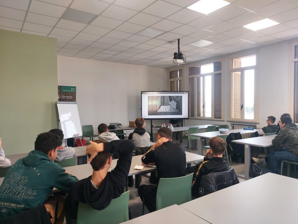 Mercoledì mattina, per gli studenti della classe 1^ Meccanica Agricola,  l’aula si è trasformata in un ponte verso il futuro professionale. Il nostro Centro di formazione ha avuto il piacere di ospitare due tecnici specializzati del Gruppo SDF (Same Deutz-Fahr), leader mondiale nel settore delle macchine agricole.