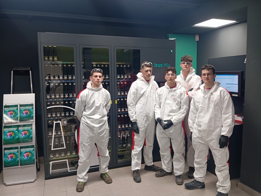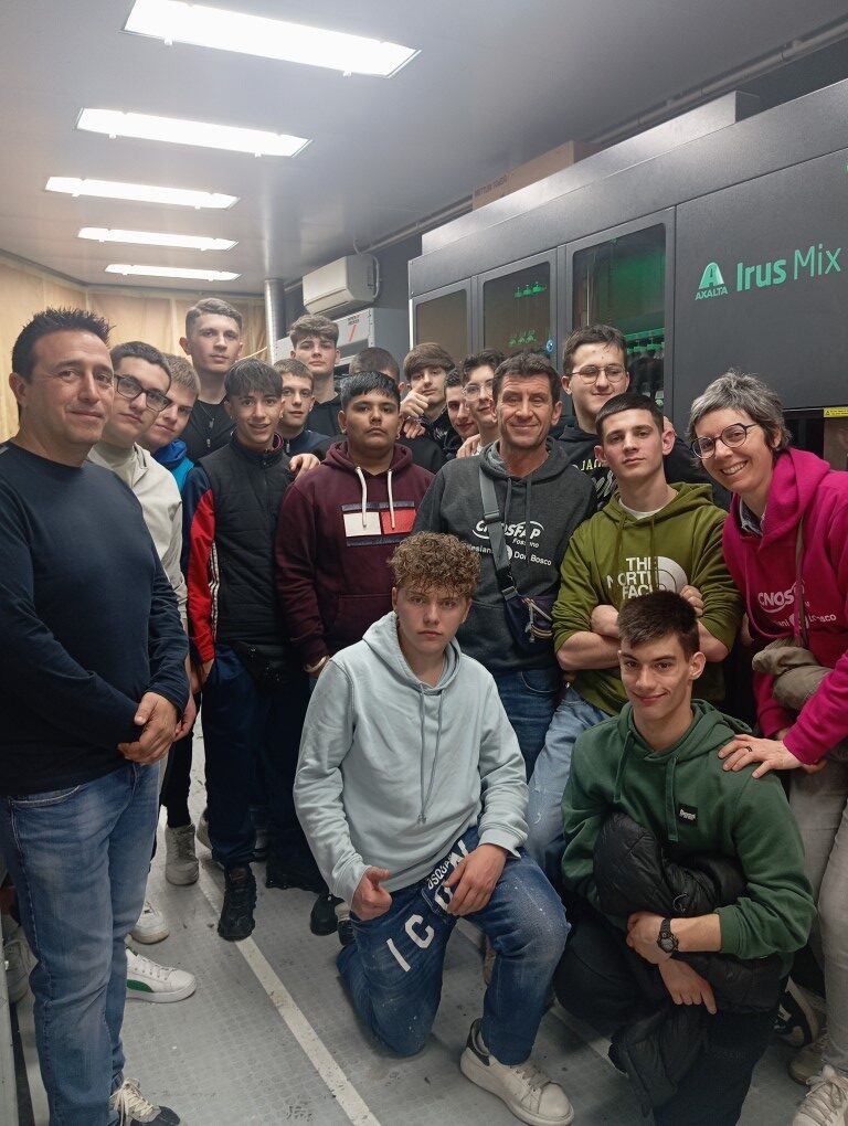 Nel pomeriggio si sono trasferiti a Parma presso la Carrozzeria Antares di via Paradigna 113 dove hanno potuto visionare la struttura- cabina forno della Saico-zero e simulare la preparazione di un codice colore con il tintometro automatico Axalta guidati dal responsabile della carrozzeria il Sig. Mirko.
