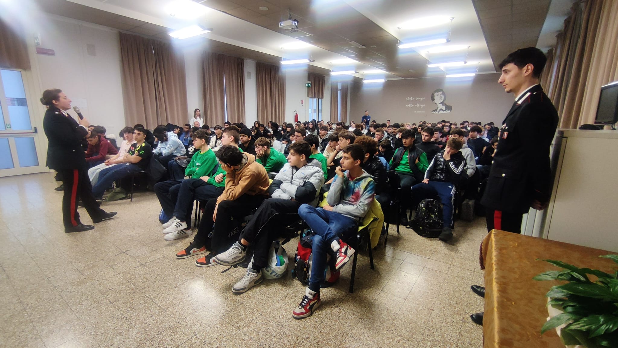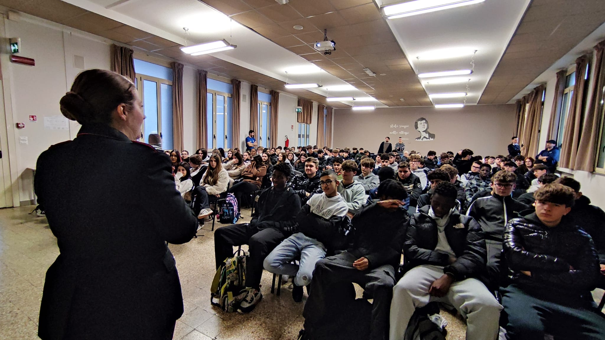 A guidare il momento di confronto è stata la Marescialla Giulia Rosalia accompagnata dai Carabinieri La Placa e Damiano, che con un approccio diretto ed empatico ha saputo catturare l’attenzione dei ragazzi, trasformando una lezione teorica in un dialogo aperto sui valori che fondono una comunità consapevole.